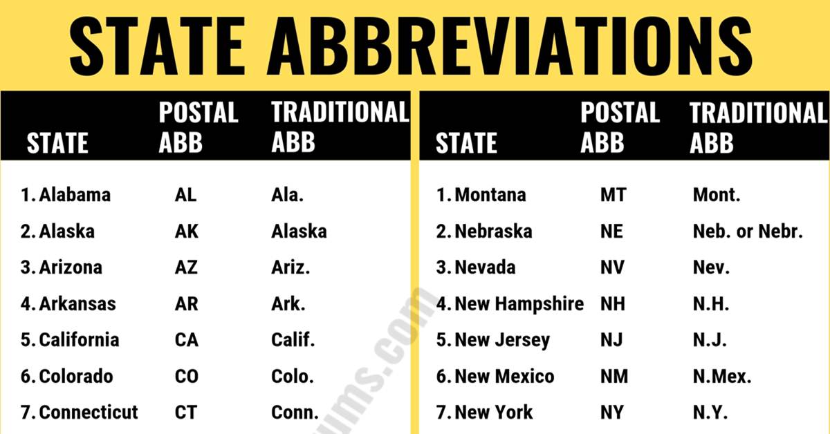 state abbreviations full list state abbreviations english