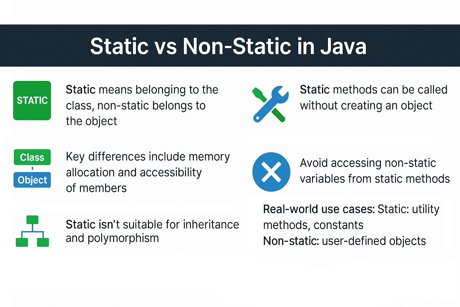 Tidak hanya Static Non Static Java, anda juga bisa melihat gambar lain seperti Why We Use, Block Diagram, Method Syntax, Method Example, Variable Example, Nested Class, Means, Private, Type, Import, Int, and Final vs.