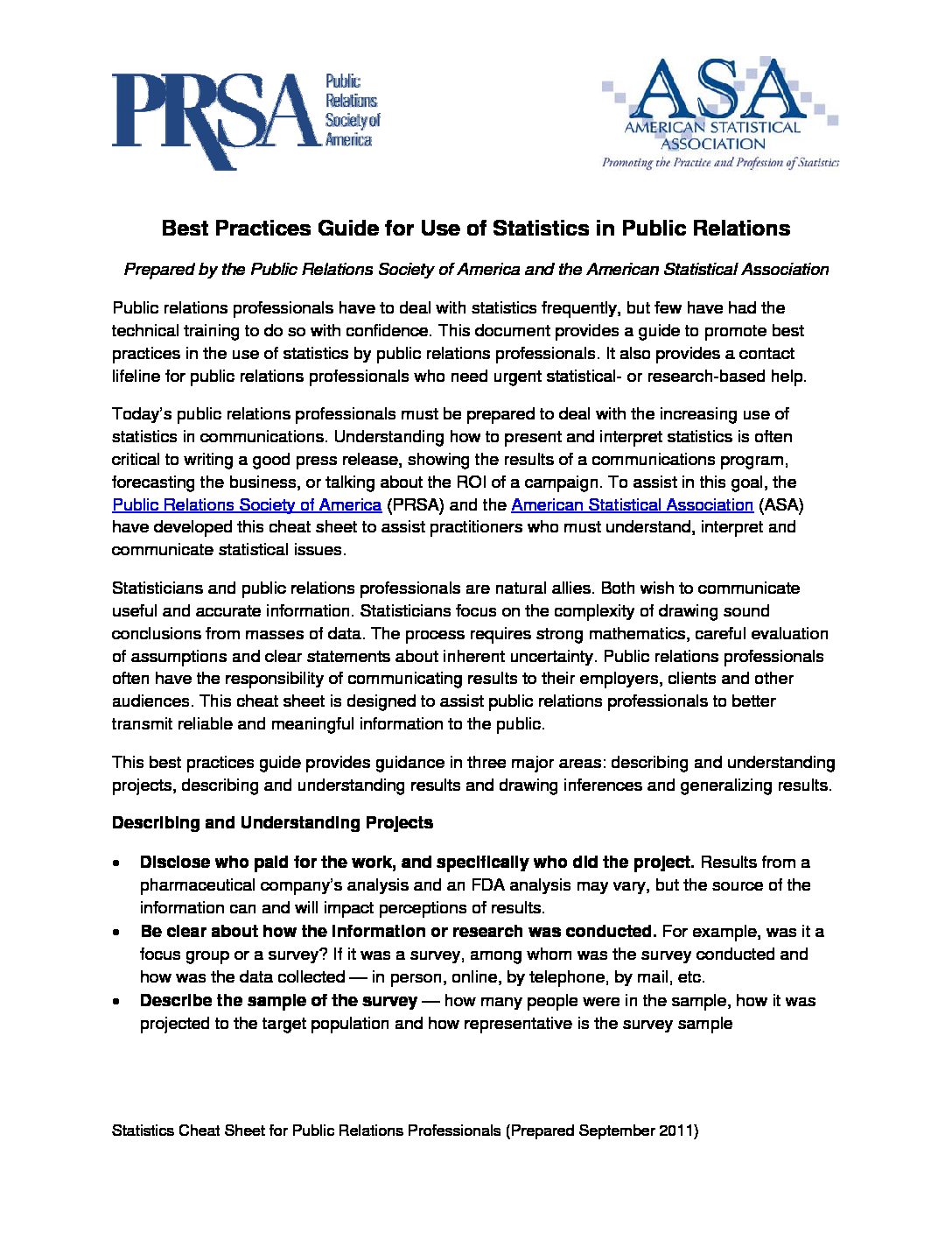 practices guide statistics public relations versta