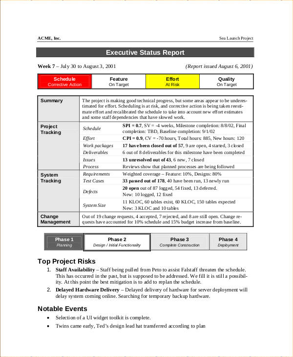 project status report template word google docs