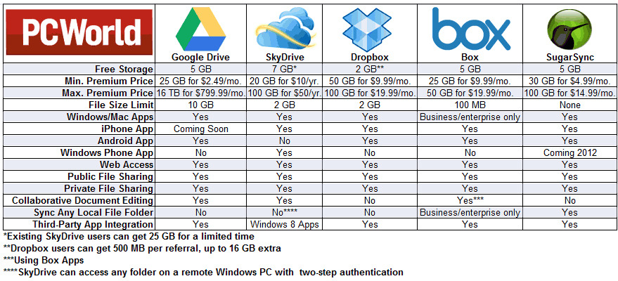 cloud storage comparison chart mobile app microsoft windows