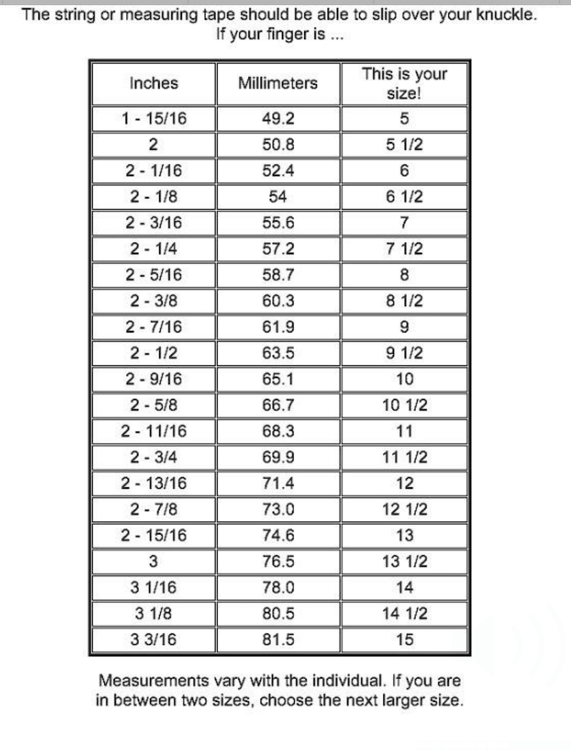 Berbagai Contoh String Ring Size Chart