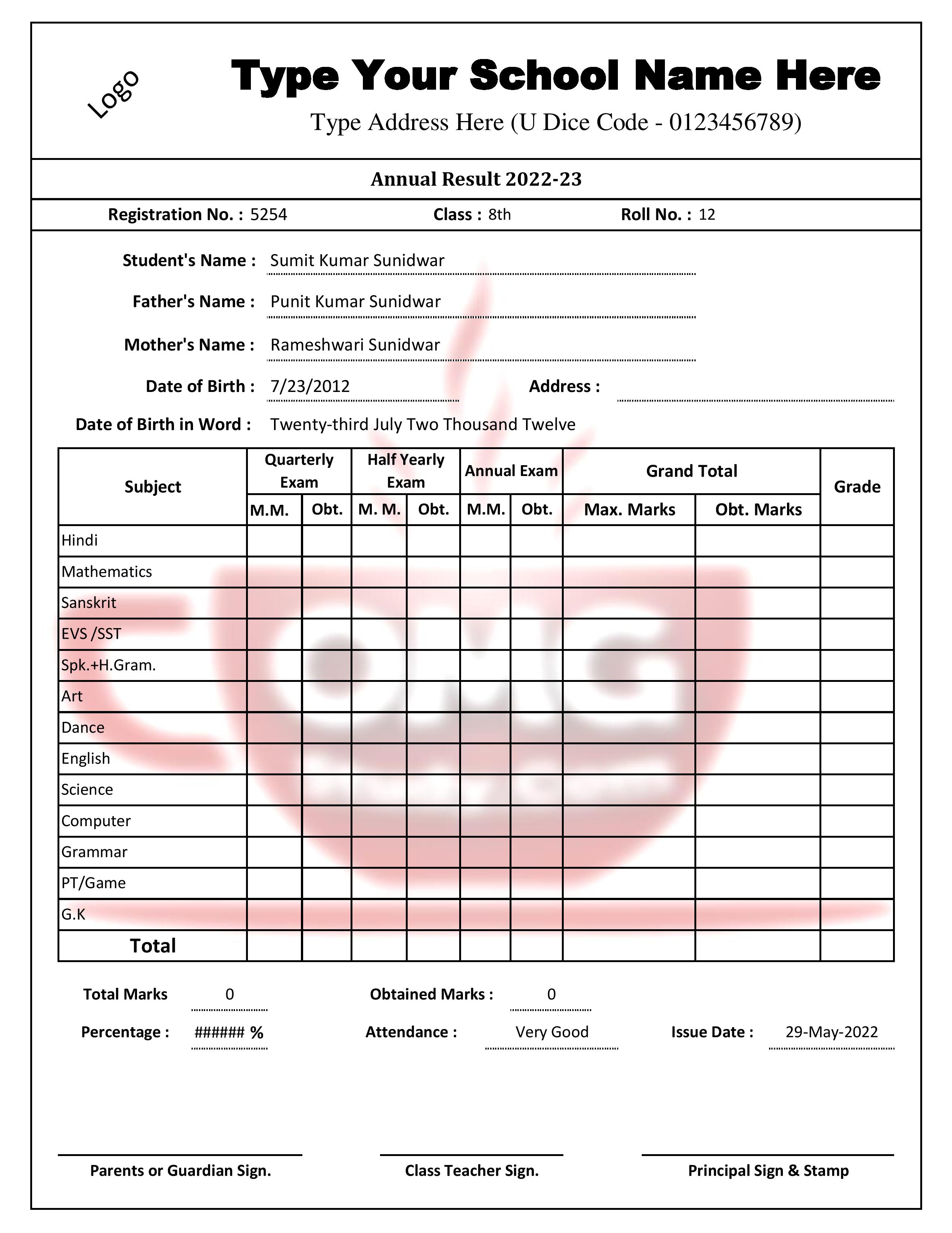 Jika kamu sedang mencari Student Mark Sheet, maka anda berada di halaman yang tepat. Kami menyediakan aneka Student Mark Sheet yang bisa anda pesan online. Silakan hubungi kami via +6282245078486, jangan lupa sertakan juka gambar yang diinginkan.