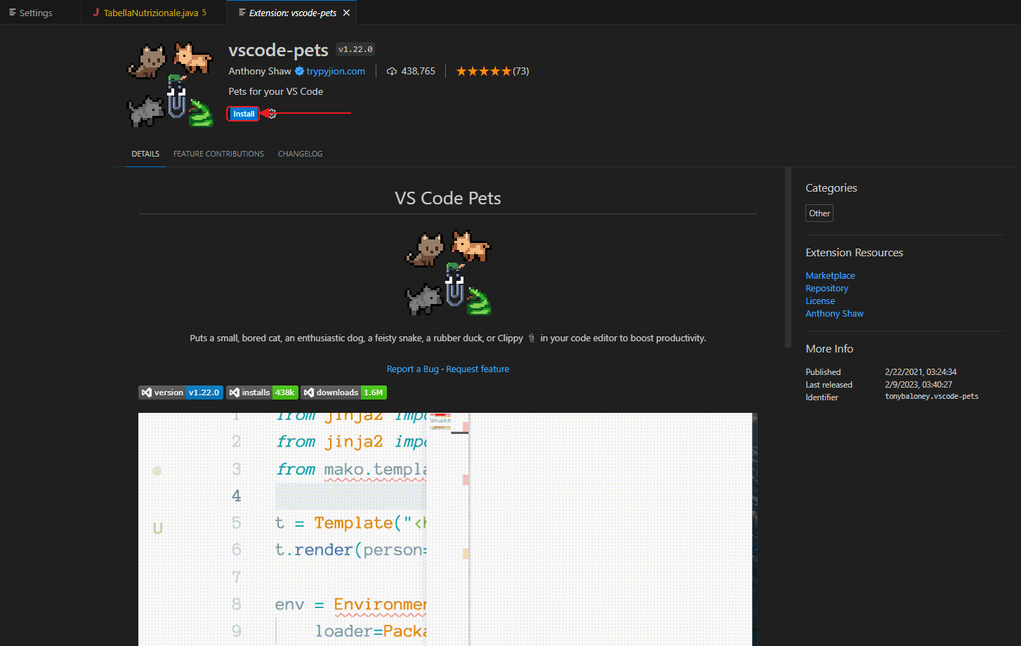 Berbagai Contoh Studio Code Pet