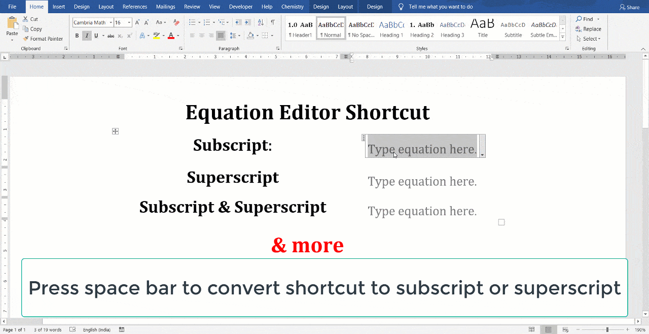 Berbagai Contoh Superscript Shortcut