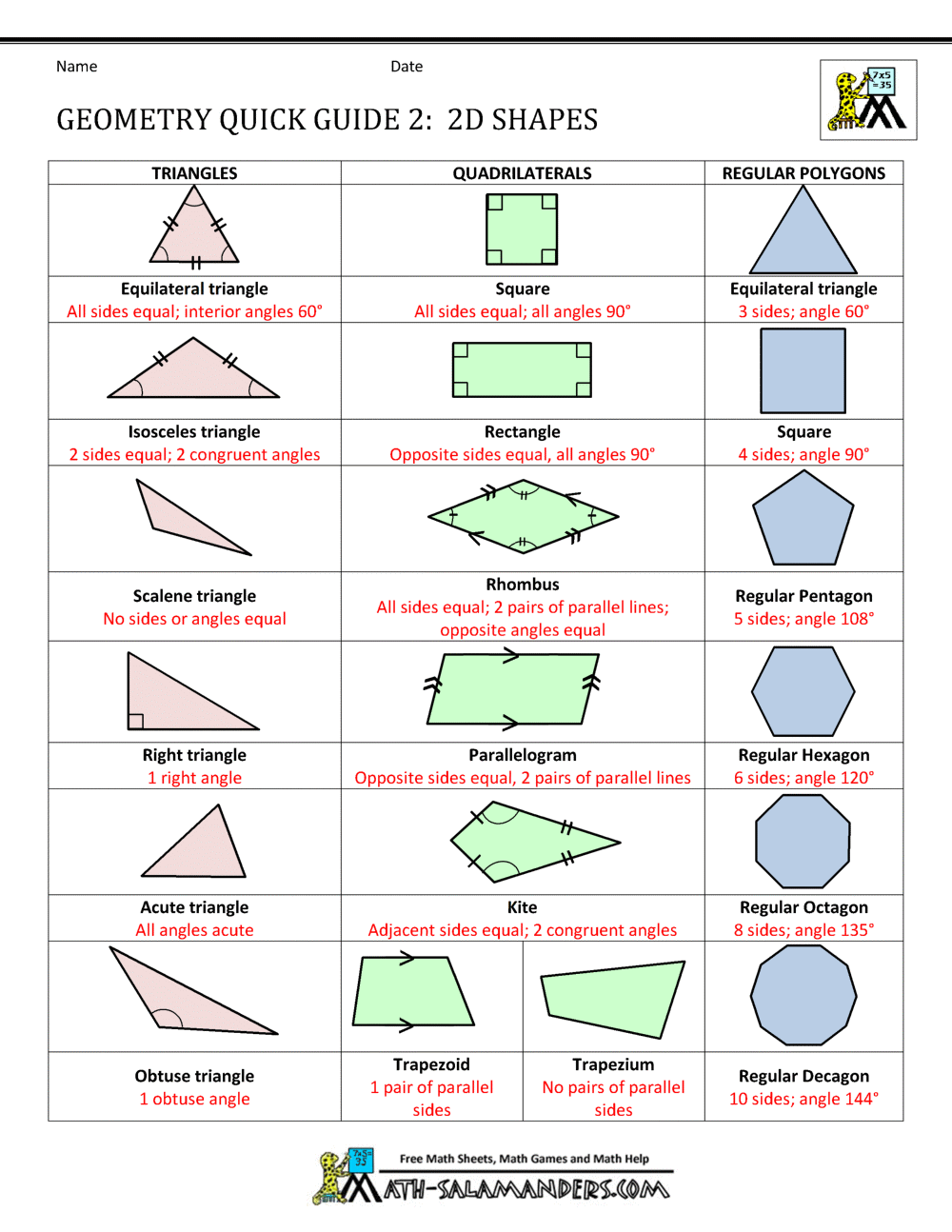 geometry cheat sheet angles shapes solids printable