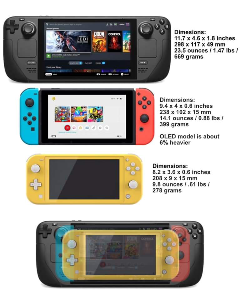 nintendo switch nintendo switch lite steam deck size comparison