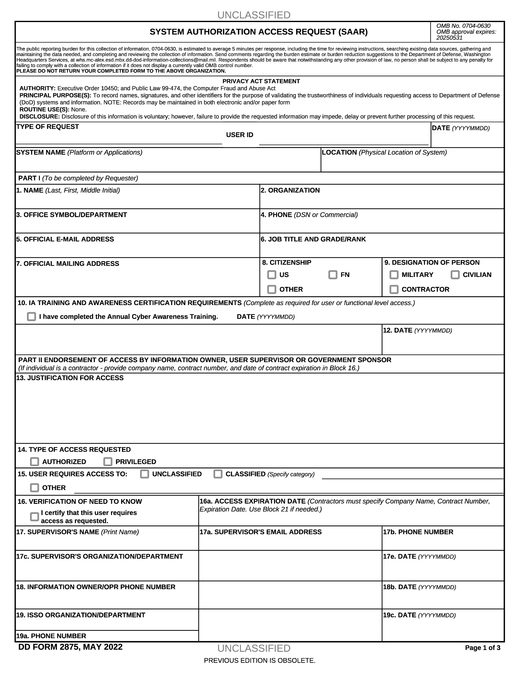 dd form system authorization access request saar forms docs