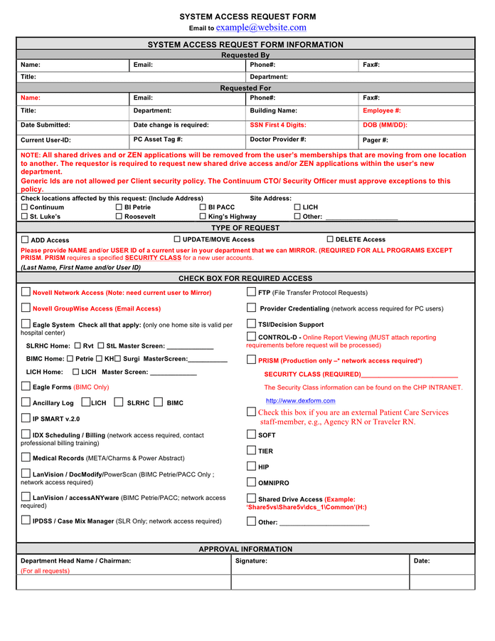 systems access systems access request form information security