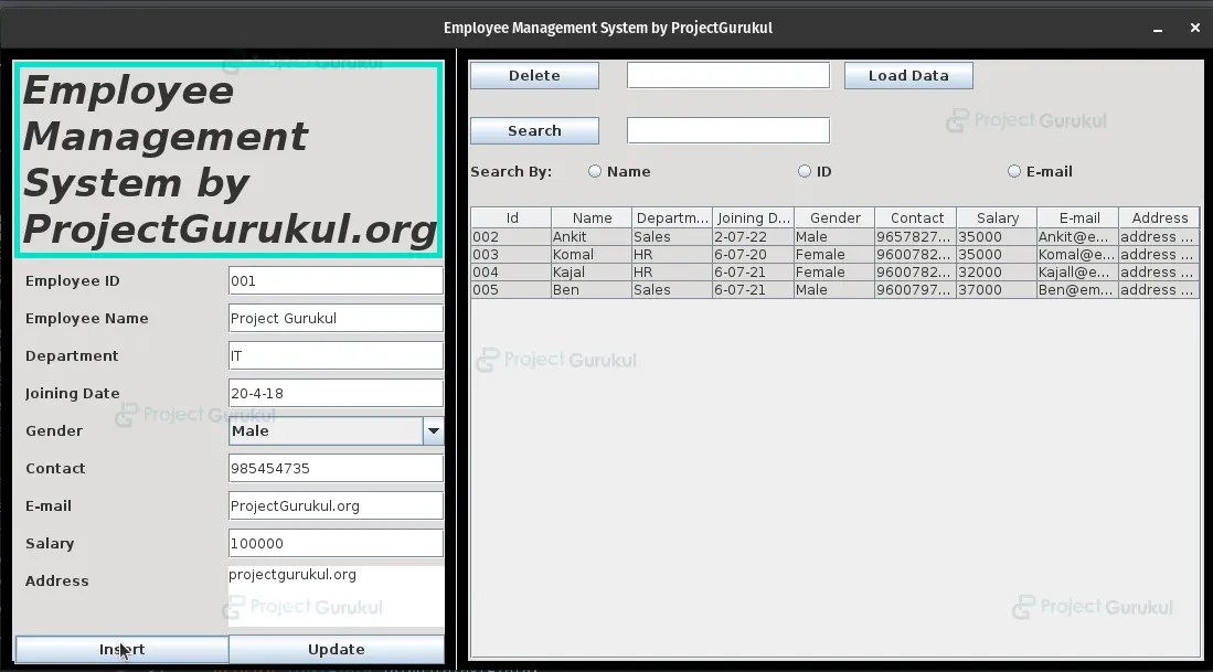java employee management system project source code project gurukul