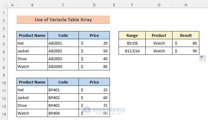 Berbagai Contoh Table Array