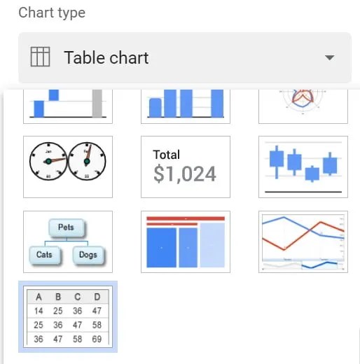 Berbagai Contoh Table Chart