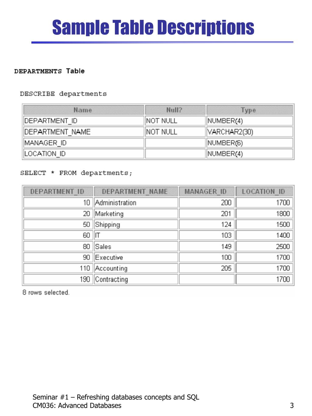 Berbagai Contoh Table Description