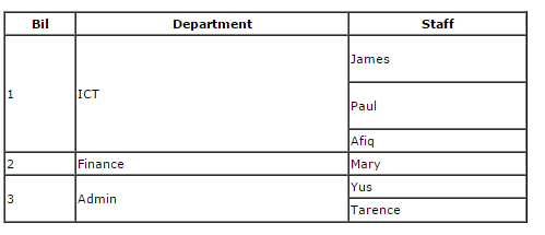Berbagai Contoh Table Rowspan