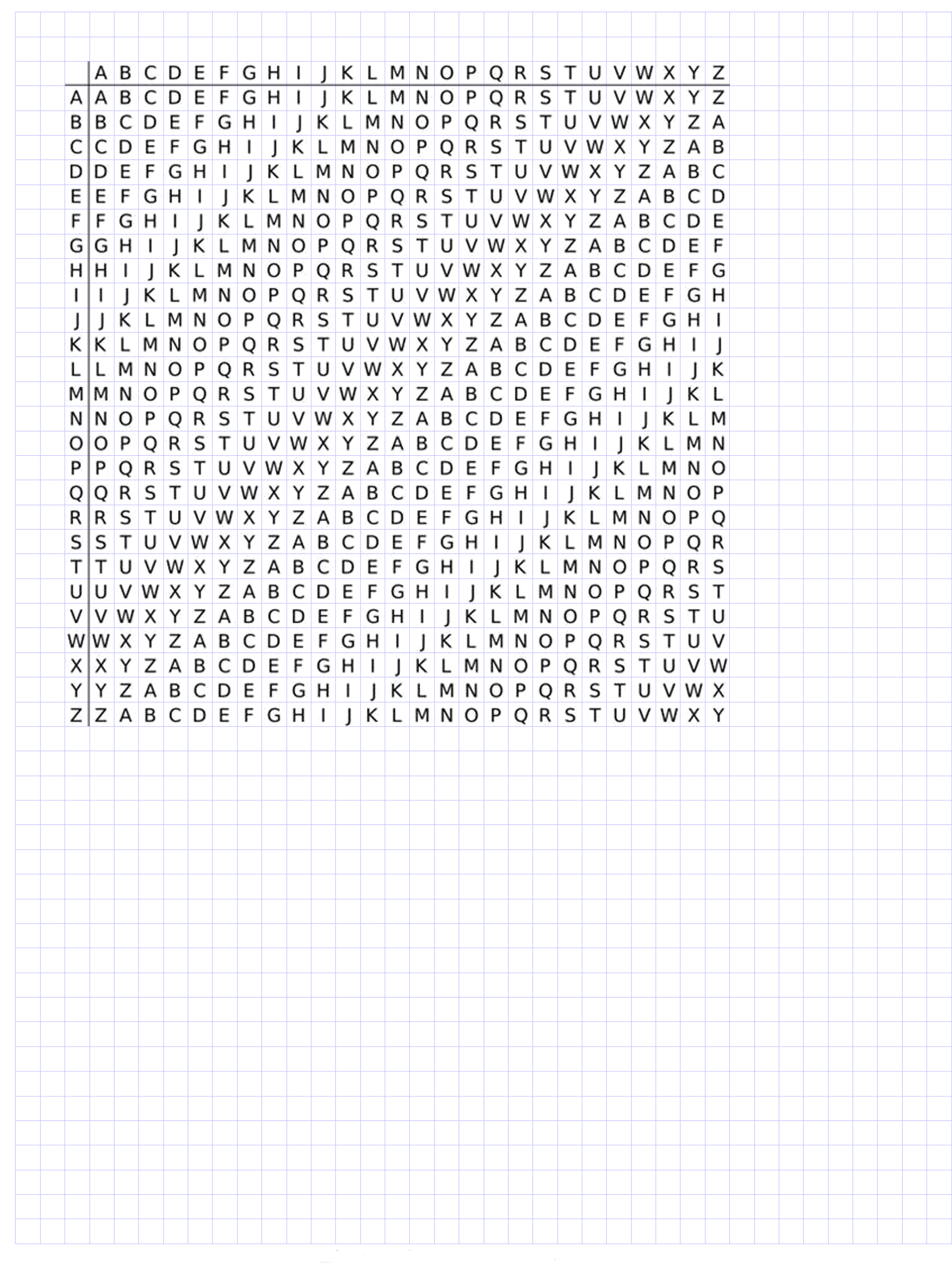Tidak hanya Tabula Recta, anda juga bisa melihat gambar lain seperti Caesar Cipher, Autokey Cipher, Polyalphabetic Cipher, Nihilist Cipher, Polybius Square, Transposition Cipher, Rail Fence Cipher, Scytale, Vic Cipher, Bifid Cipher, Running Key Cipher, and Classical Cipher.
