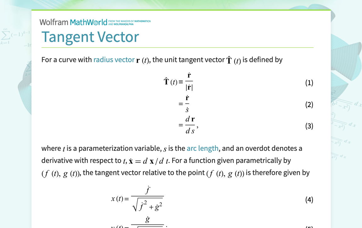 tangent vector curve mathematics stack exchange