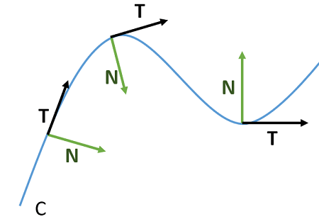 schematic diagram curve tangent vector normal vector