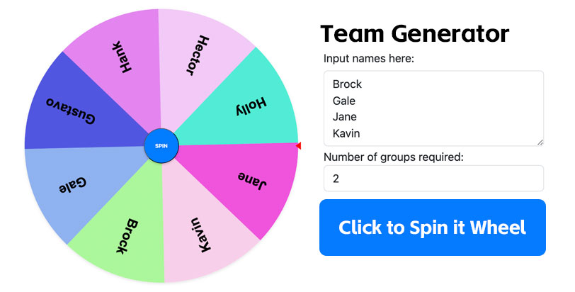 random team generator team picker wheel group maker tool