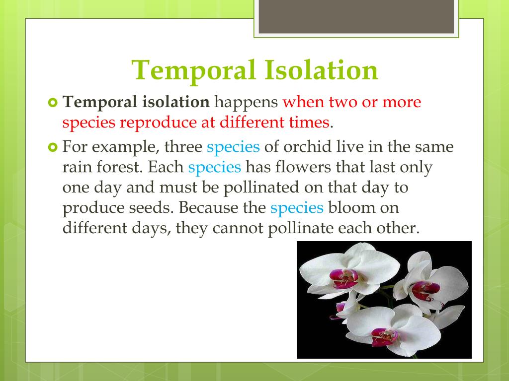 Tidak hanya Temporal Isolation, anda juga bisa melihat gambar lain seperti Mechanical Isolation, Behavioral Isolation, Gametic Isolation, Habitat Isolation, Hybrid Breakdown, Ecological Isolation, and Hybrid Sterility.