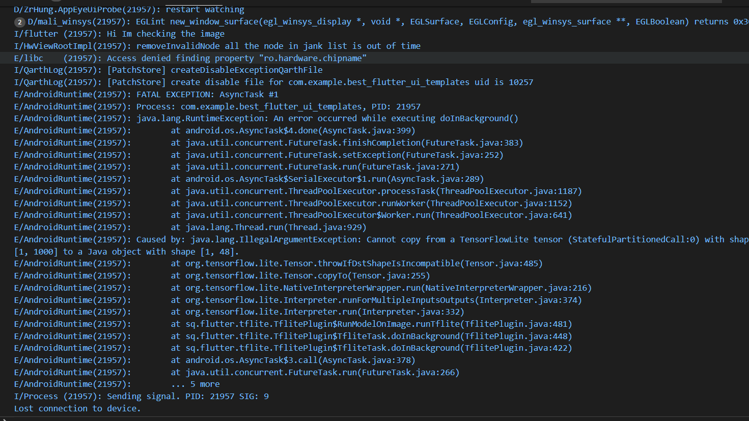 tensorflow lost connection device loading tflite model