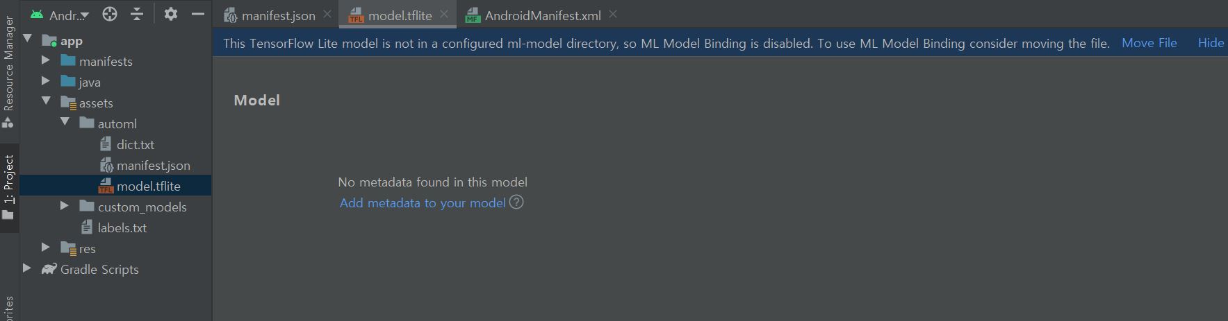 android studio mlkit tflite file configuration stack overflow