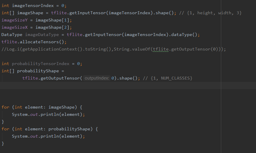 tensorflow read output tensor tflite android studio