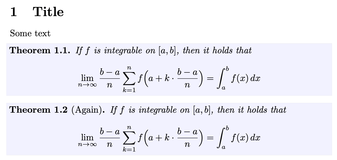 math mode add background colour theorem header tex latex