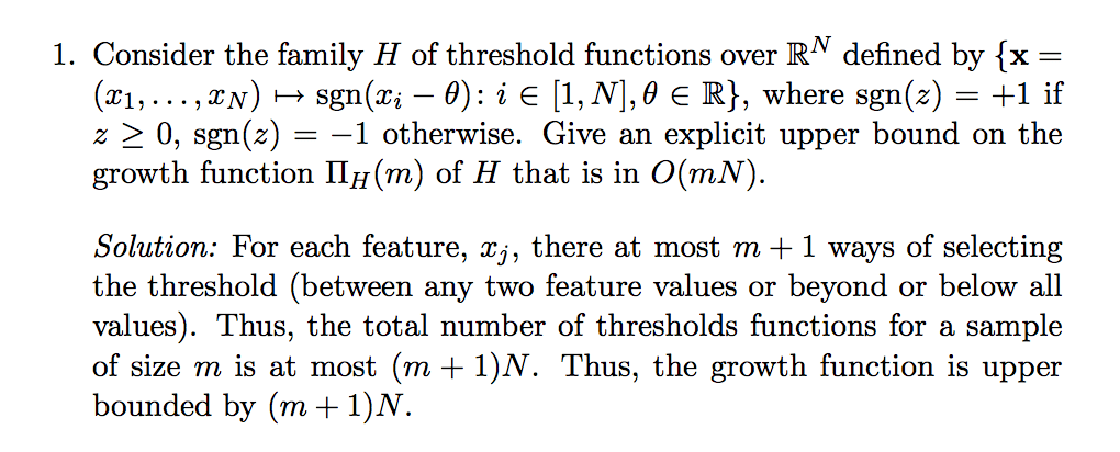 machine learning calculate growth function threshold