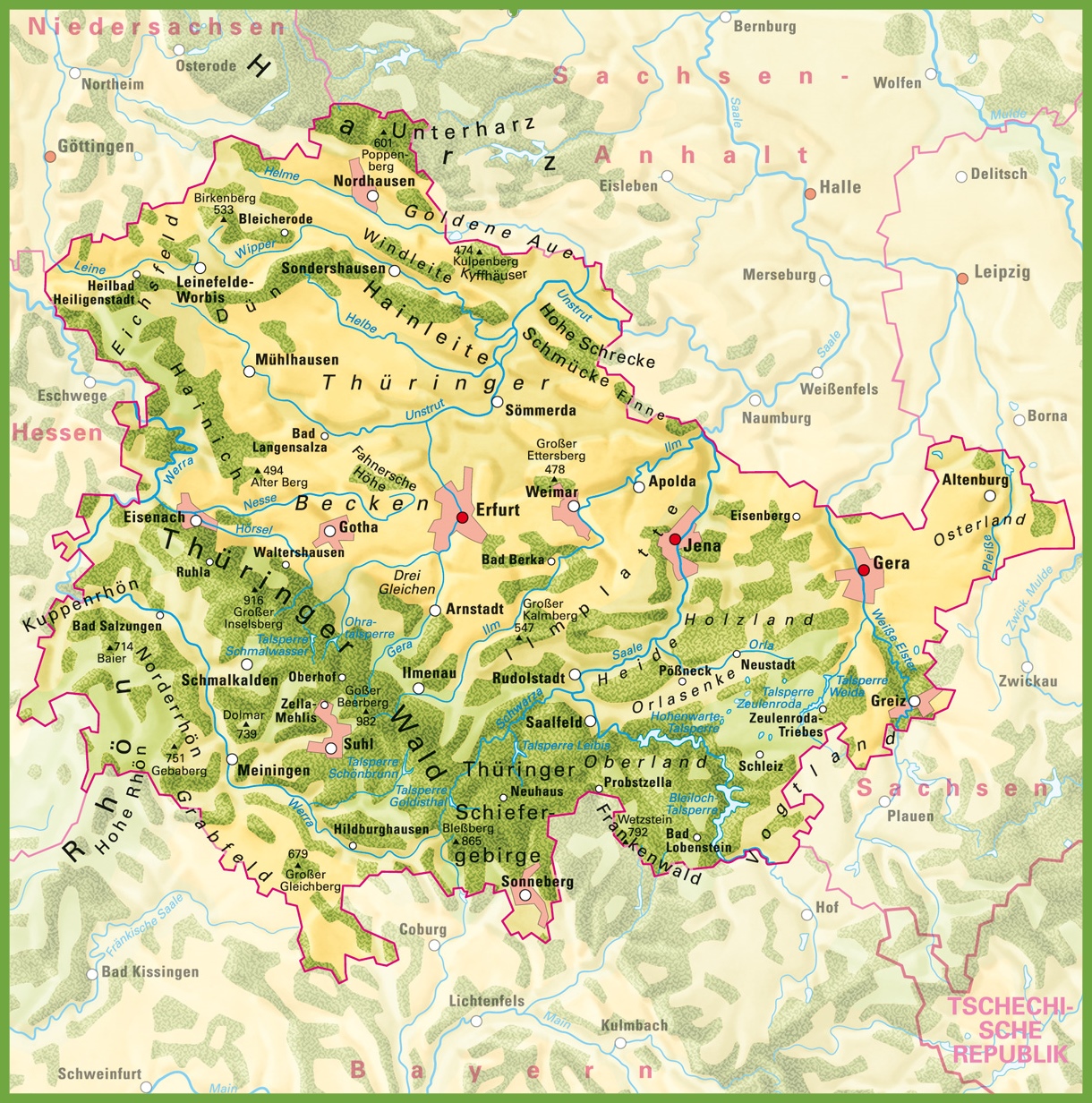 thuringia germany island map important topographic information