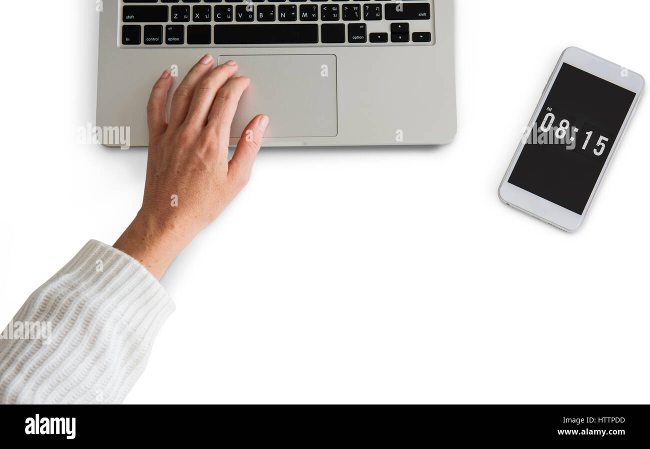 time concept tablet computer digital time display stock photo