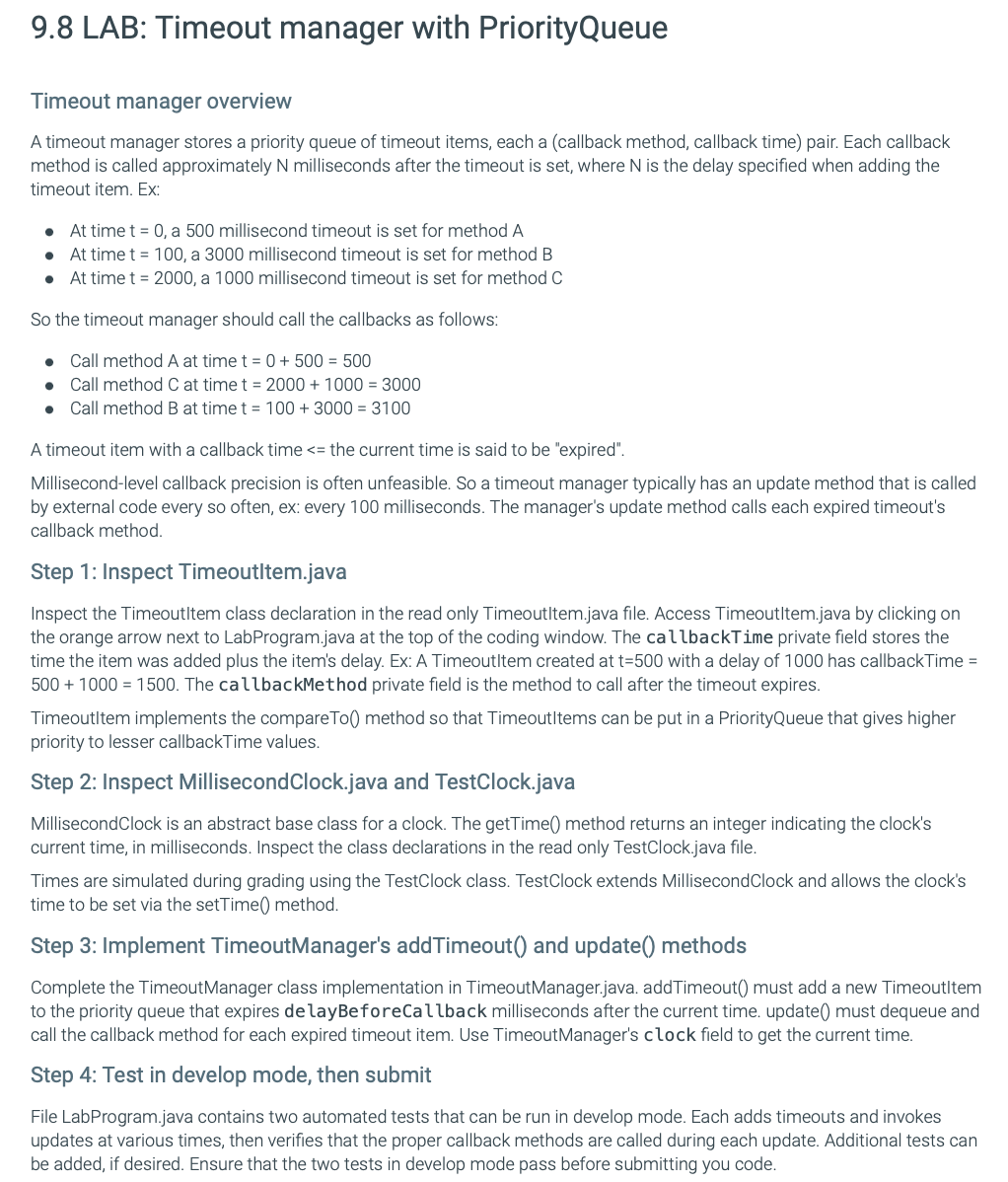 solved lab timeout manager priorityqueue timeout cheggcom