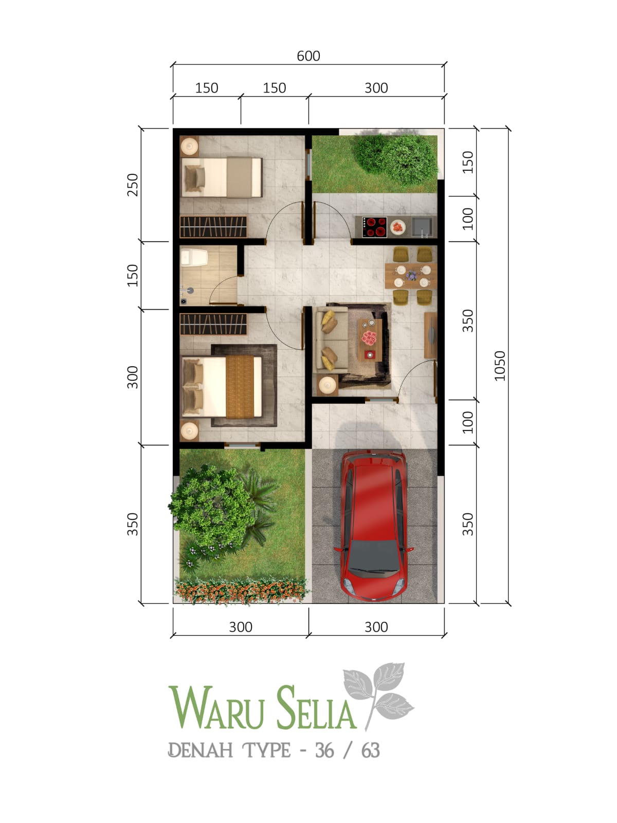 Berikut kami sertakan berbagai contoh gambar untuk Tipe 36, silakan save gambar di bawah dengan klik tombol pesan, anda akan kami arahkan pemesanan via WA ke +6282245078486.