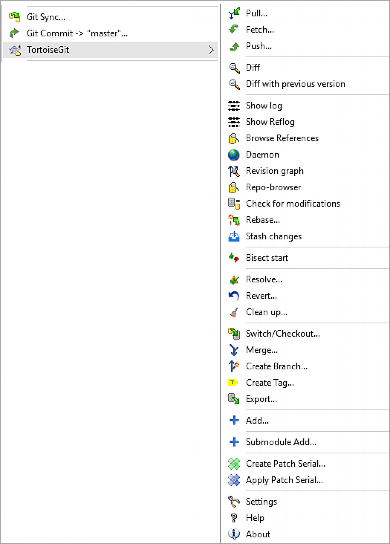 Tidak hanya Tortoisegit, anda juga bisa melihat gambar lain seperti TortoiseSVN, Mercurial, RabbitVCS, AnkhSVN, Bazaar, Git, and TortoiseHg.