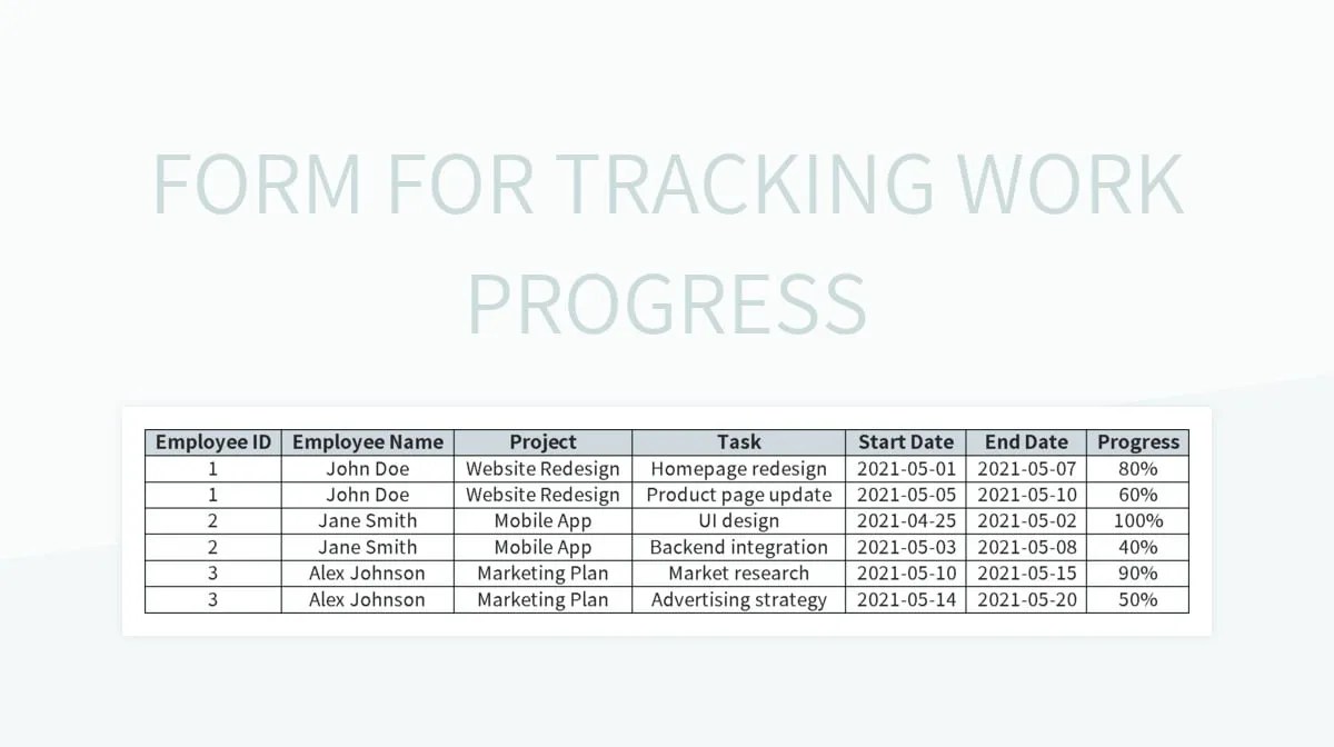 work progress tracking templates google sheets microsoft