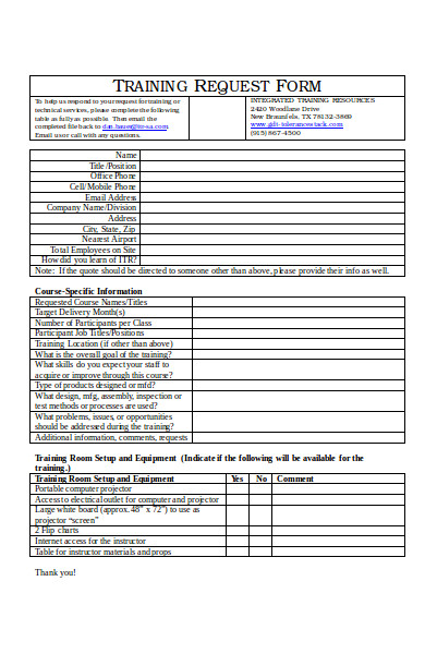 Berbagai Contoh Training Request