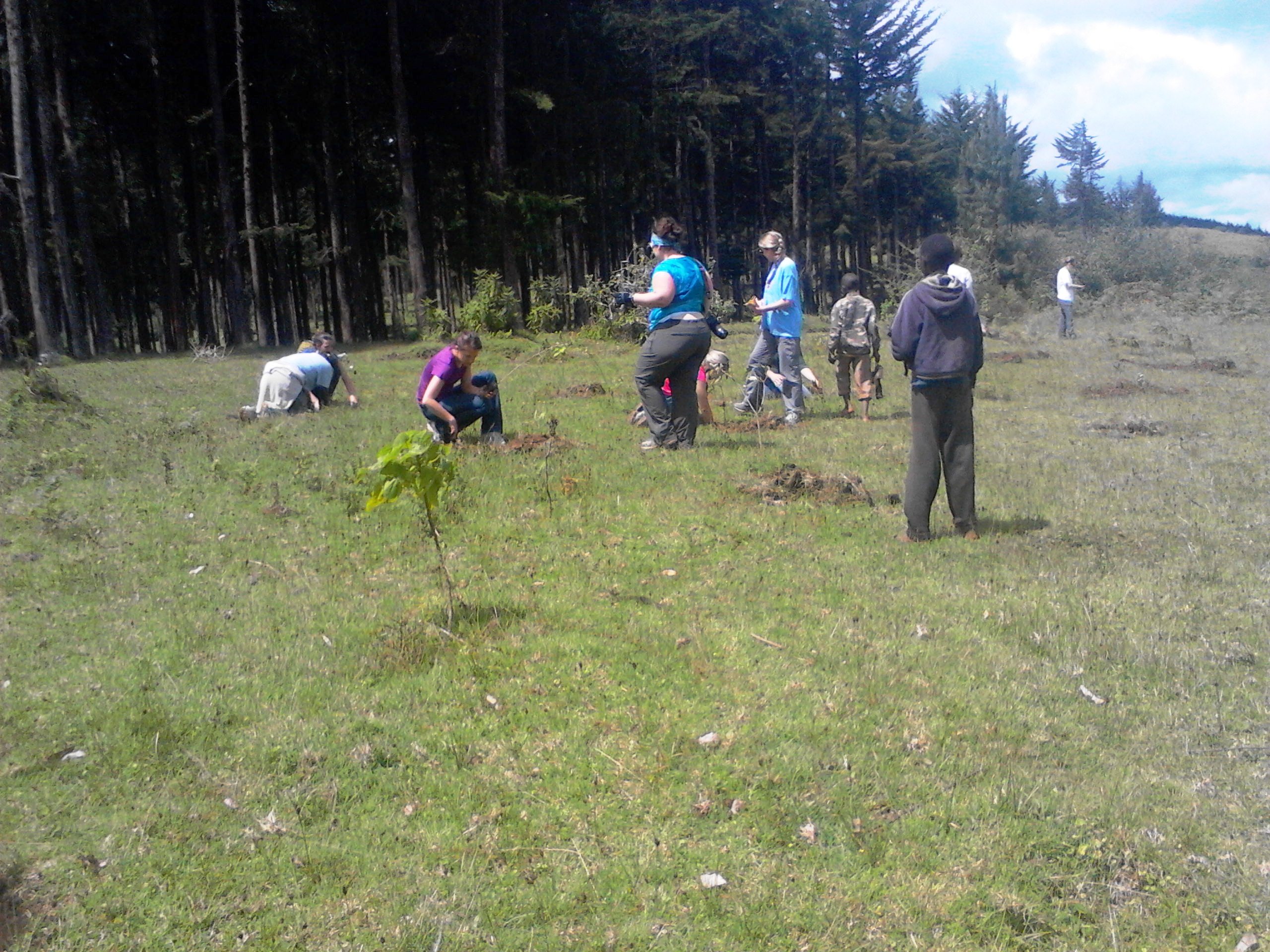 planting trees open area reforestation conifer trees