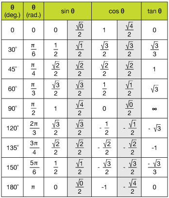 Berbagai Contoh Trig Values Chart