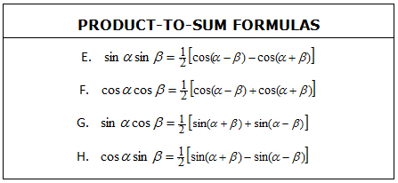 trigonometry formulas involving sum difference product identities