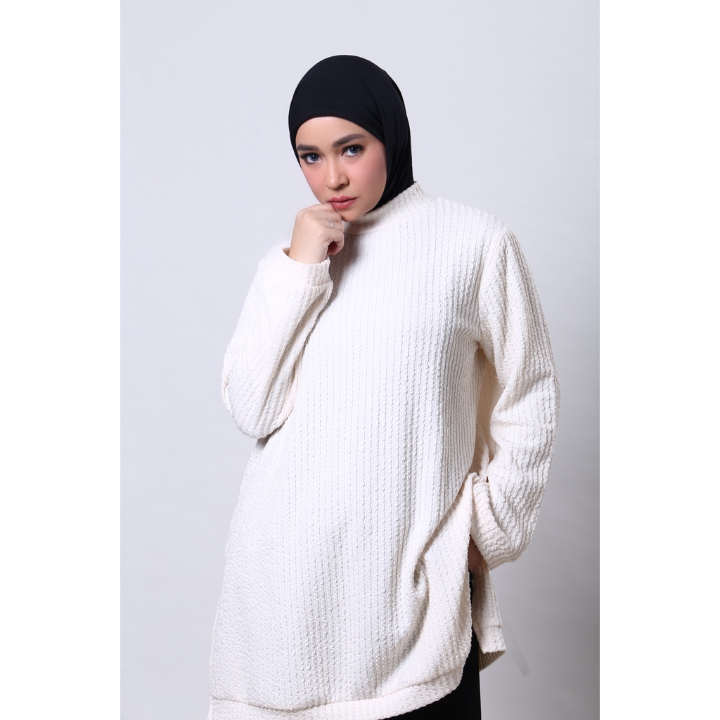 jual long tunik knit bahan rib knit long tunik kondangan tunik