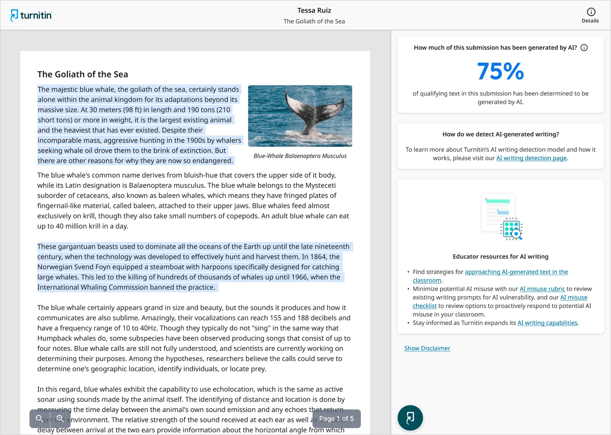 turnitin plagiarism ai detection reports files check services