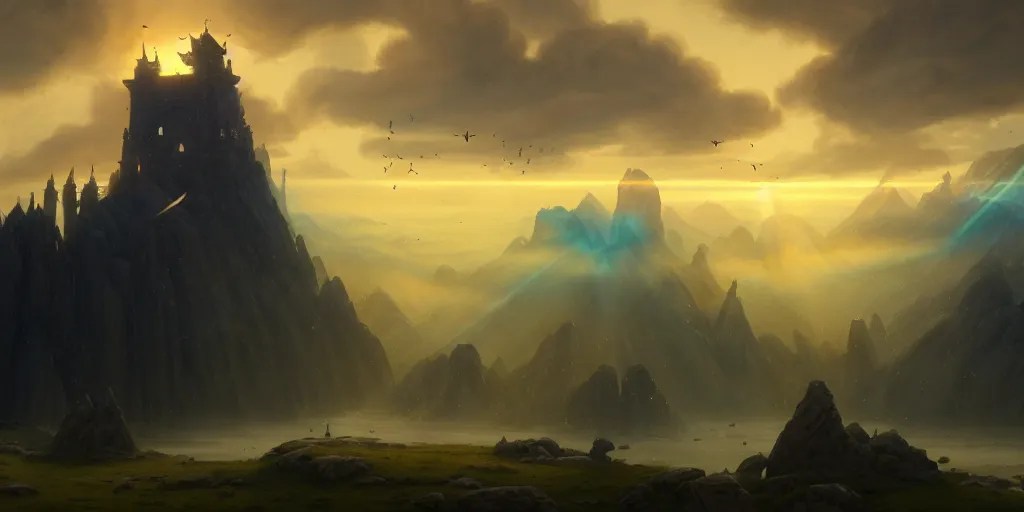 beautiful fantasy landscape medieval tower stable diffusion