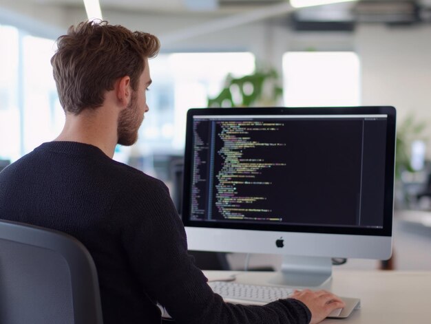 software developer typing code computer premium ai generated image
