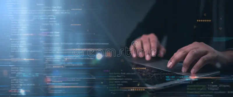 software developer programmer typing code laptop computer