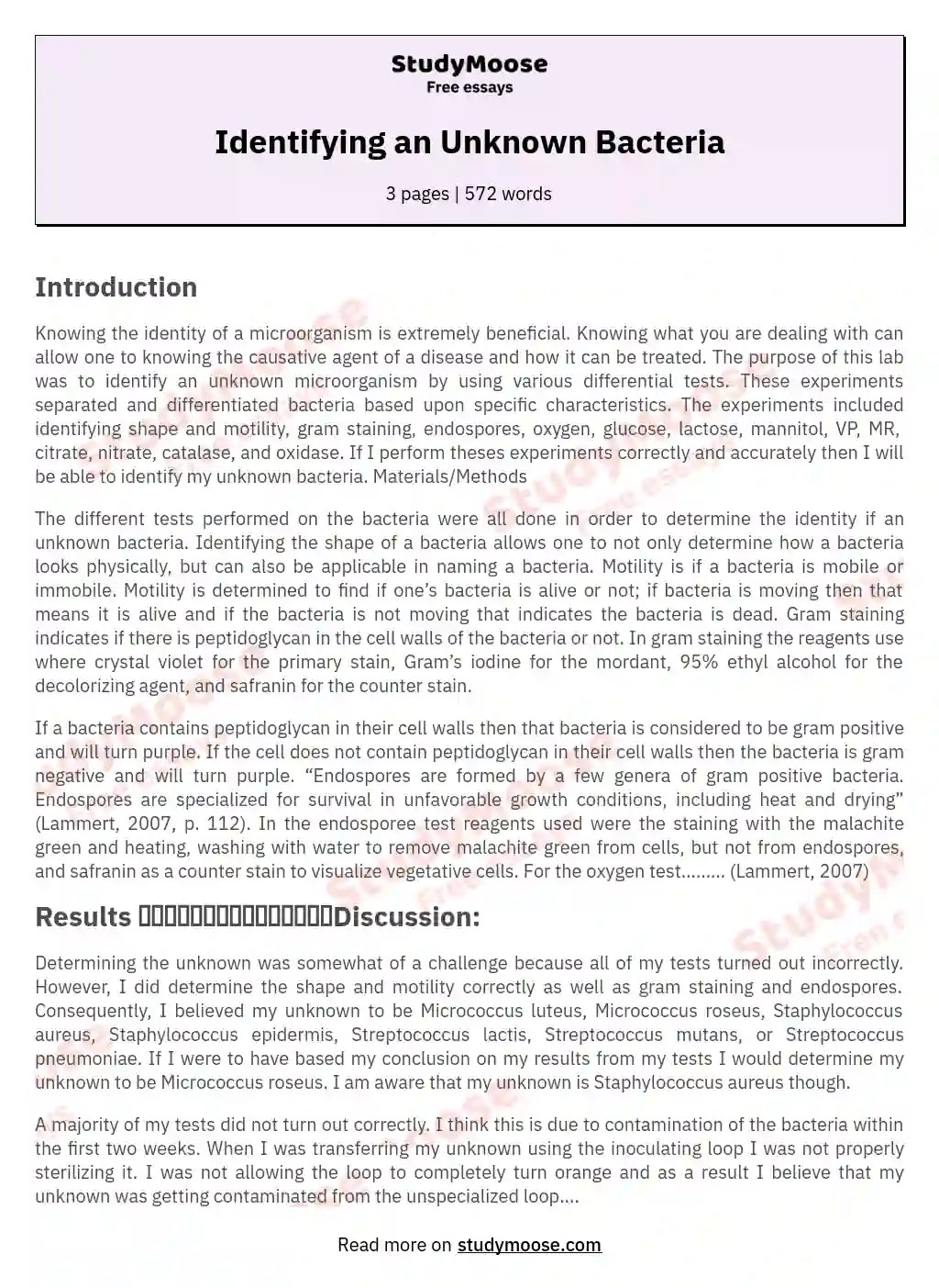identification unknown bacteria lab report essay