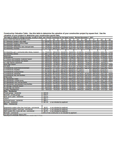 Berbagai Contoh Valuation Table