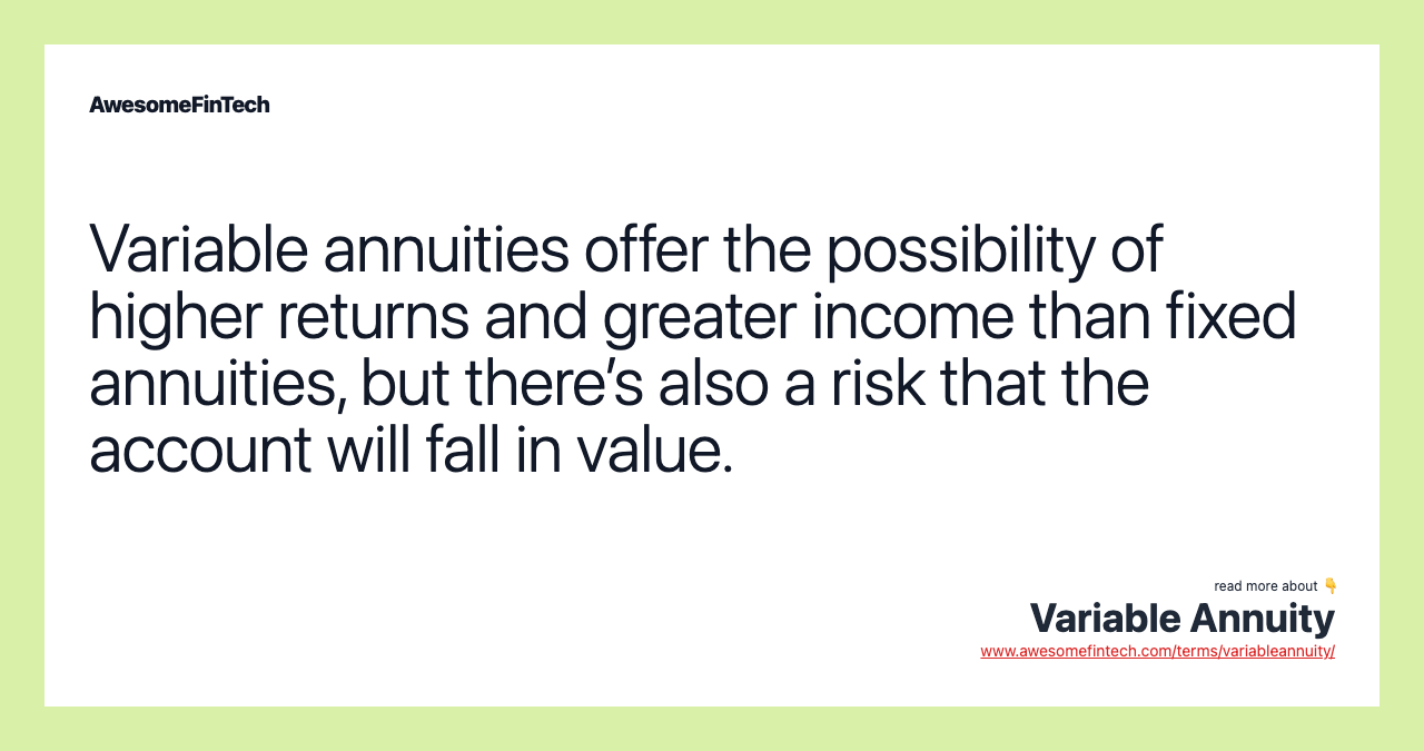 Jika kamu sedang mencari Variable Annuity, maka anda berada di halaman yang tepat. Kami menyediakan aneka Variable Annuity yang bisa anda pesan online. Silakan hubungi kami via +6282245078486, jangan lupa sertakan juka gambar yang diinginkan.