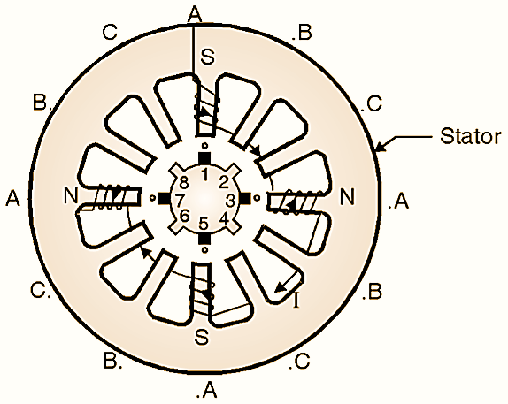 variable reluctance stepper motor working diagram
