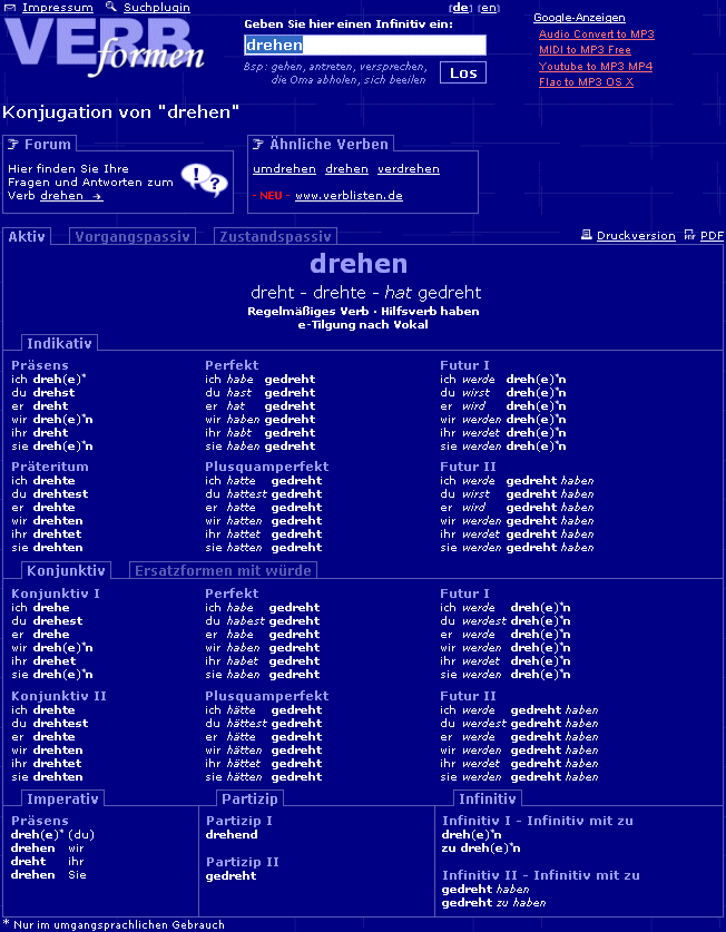 conjugation german formen forms verb examples rules