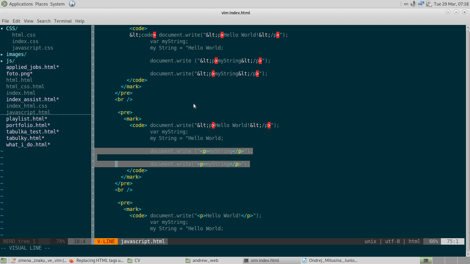 replacing html tags visual mode vim stack overflow