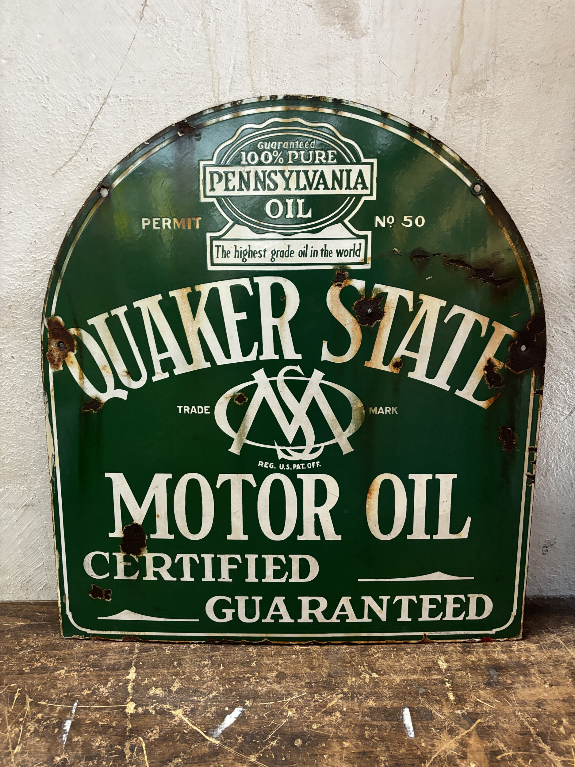 sold vintage porcelain enamel gas oil sign original quaker state